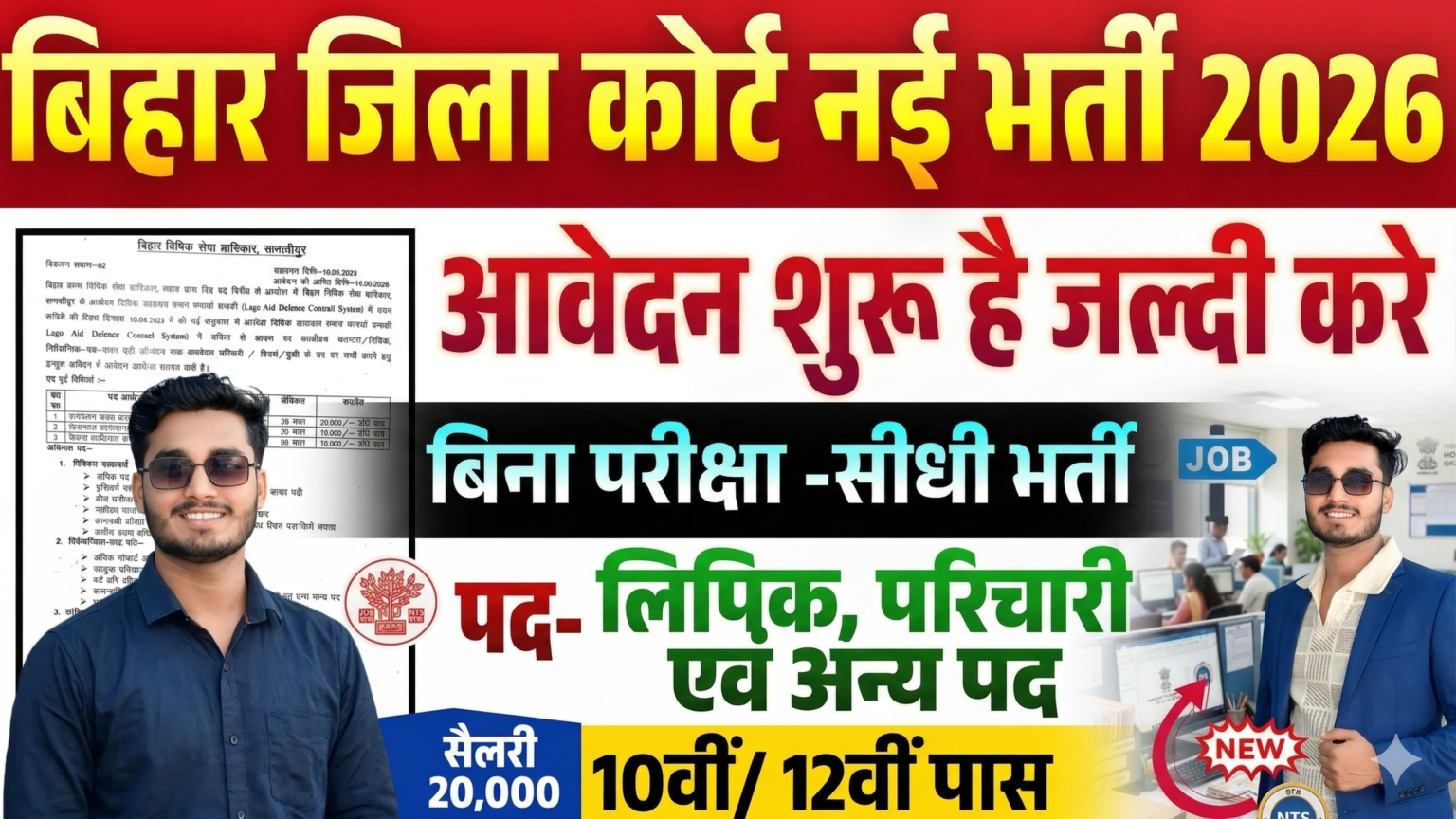 दोस्तों आज के इस लेख में हमने आपको Bihar Jila Court New Vacancy 2026 के बारे में सम्पूर्ण जानकारी प्रदान की है मै आशा करता हु कि आपको यह जानकारी पसंद आएगी यदि आपको यह जानकारी पसंद आती है, तो इस लेख को अपने दोस्तों और जानने वालो के साथ जरूर शेयर करें और यदि आपके मन में इस लेख से संबंधित कोई भी प्रश्न या सुझाव हो तो उसे भी आप नीचे दिए गए कॉमेंट बॉक्स में लिखकर हमारे साथ जरूर शेयर करें।