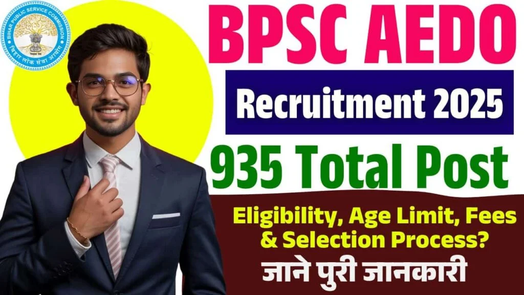 BPSC AEDO Recruitment 2025: क्या आप बिहार राज्य में सरकारी शिक्षक प्रबंधन के पदों पर नौकरी प्राप्त करना चाहते है, तो आपके लिए एक बहुत बड़ी खुशखबरी निकल कर आ रही हैं क्योंकि बिहार लोक सेवा आयोग (BPSC) द्वारा Assistant Education Development Officer (AEDO) के रिक्त 935 पदों पर भर्ती के लिए आधिकारिक अधिसूचना जारी कर दी है जिसमें कि उम्मीदवार 05 दिसंबर 2025 से लेकर 12 दिसंबर 2025 तक ऑनलाइन आवेदन कर पाएंगे।