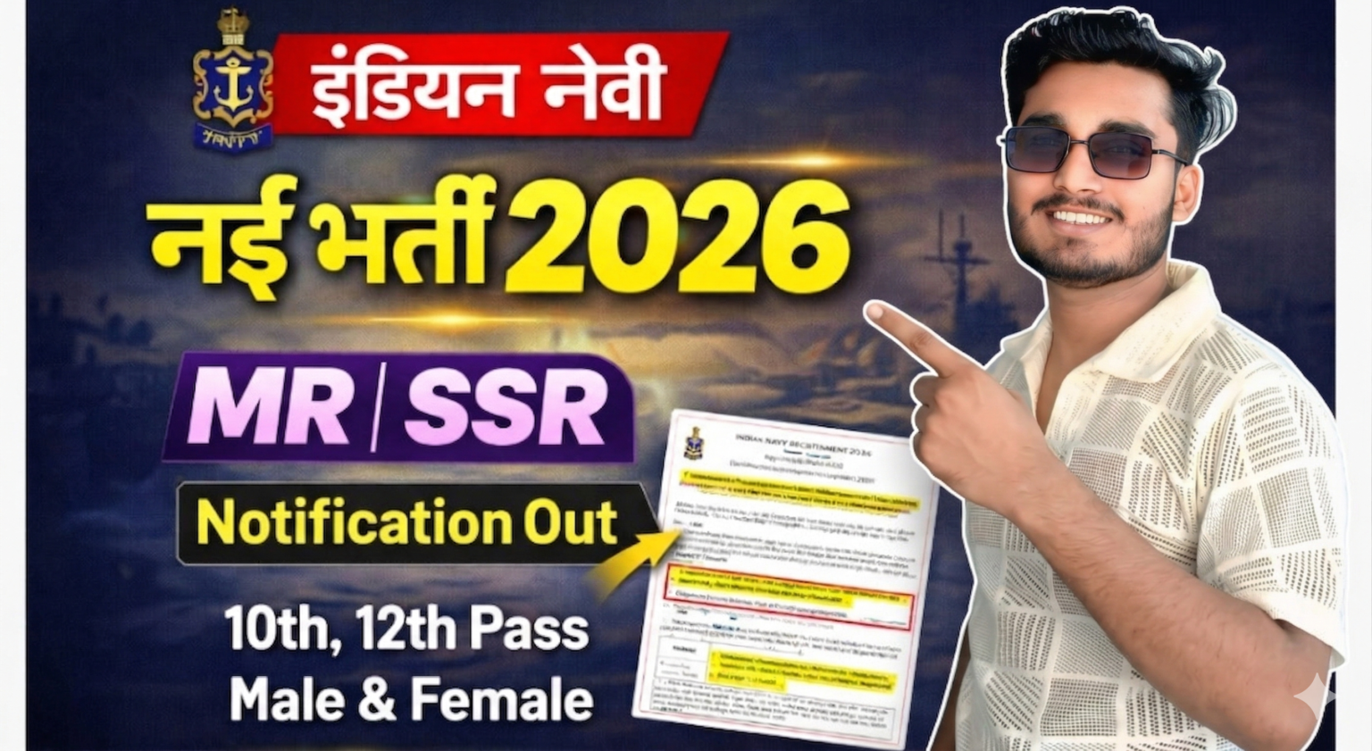 अगर आप भी 10वीं या 12वीं पास करके Indian Navy में Agniveer के तौर पर भर्ती होना चाहते हैं और इस Indian Navy Agniveer SSR, MR & SSR (Medical) Recruitment 2026 की पूरी जानकारी लेकर इसके लिए अप्लाई करना चाहते हैं, तो आपका हमारे इस लेख में स्वागत है। आपको बता दें कि Indian Navy ने Agniveer 01/2027 और 02/2027 बैच के लिए आज यानि 10 मार्च 2026 को नोटिफिकेशन जारी की है। और इस भर्ती में SSR (10+2 Math & Physics), MR (10वीं पास) और SSR (Medical) (10+2 PCB) पास उम्मीदवारों से आवेदन मांगे हैं।